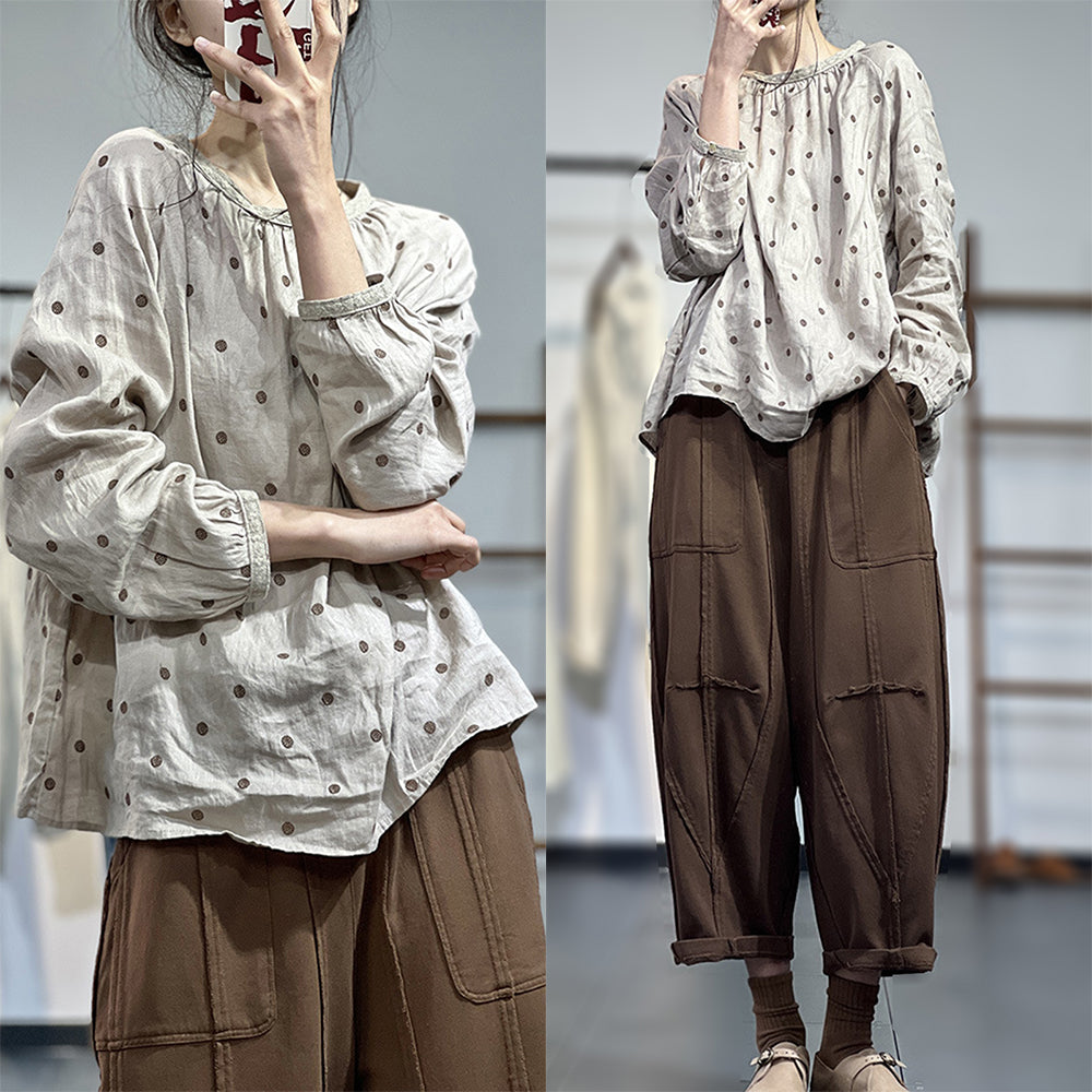 Casual Loose Fit Polka Dots Blouse