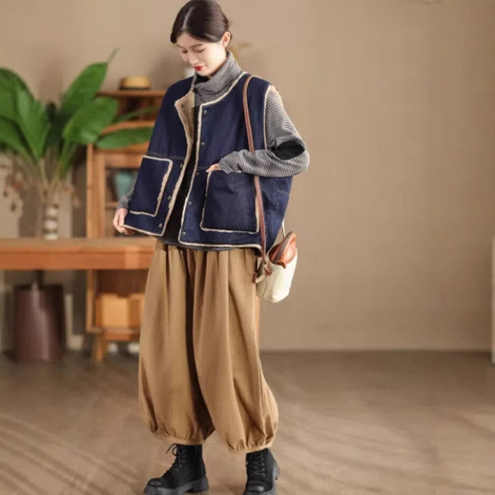 Women Reversible Denim Sleeveless Vest