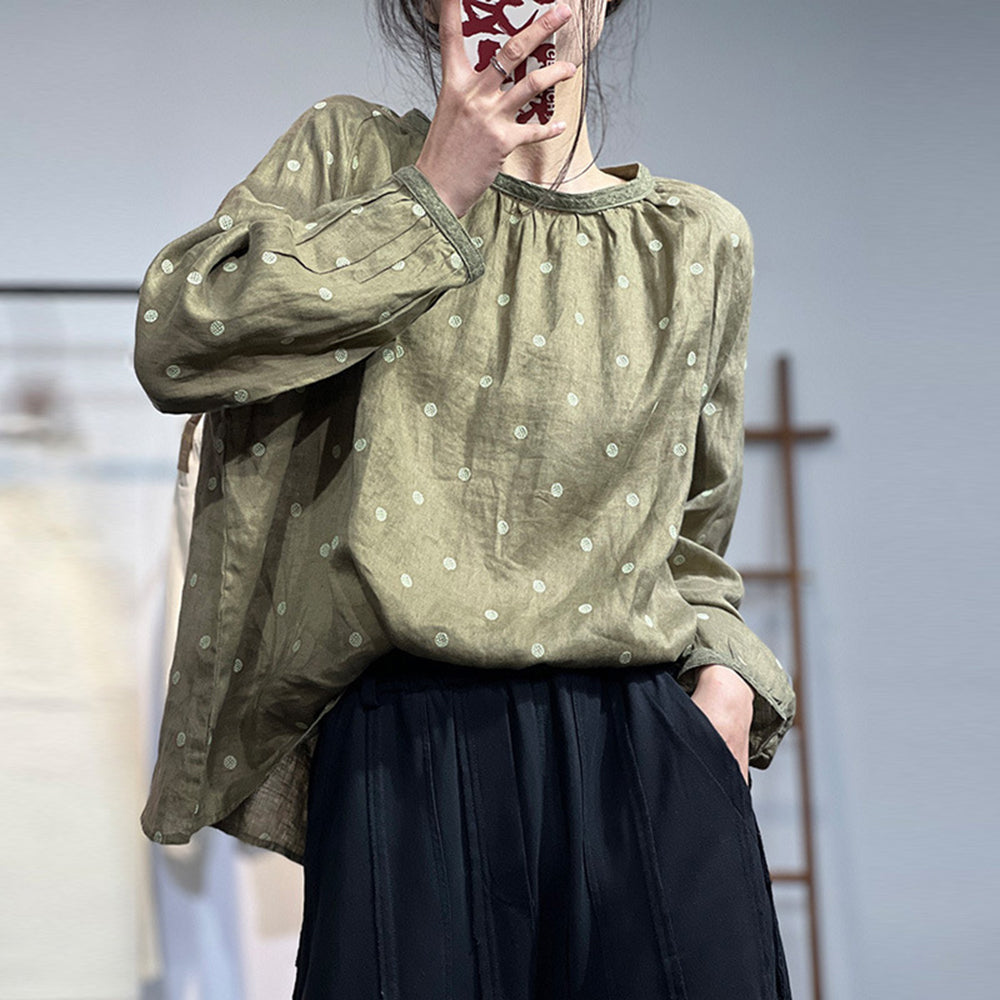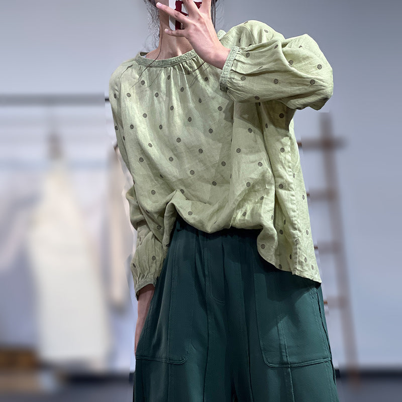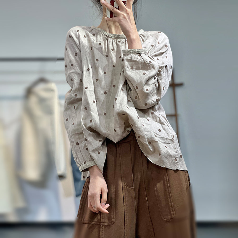 Casual Loose Fit Polka Dots Blouse